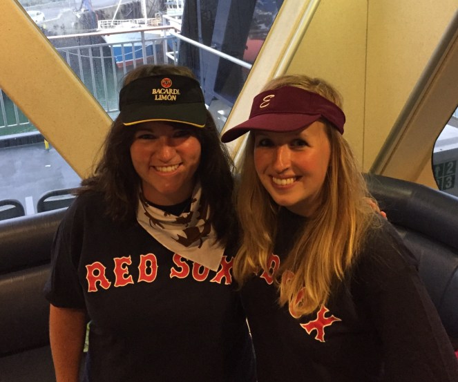 Op de boot is het afzien. Je zou denken dat zo’n groot gevaarte niet zo zou bewegen, maar als ik opsta, voel ik me net zo dronken als een doorsnee Veender op de kermiszaterdag. Het moest gewoon zo zijn, denk ik. We horen dat de oceaan extra ruig is vanwege orkaan José die gezellig op de loer ligt; de ferry van de afgelopen twee dagen was hierdoor blijkbaar ook al gecanceled. Hmm. Onwetendheid is een mooi iets. 6,5 uur later gaan Annika en ik in vol ornaat (Red Sox shirts en bingo-zonneklep) de grens over naar de VS. Ik denk er gelukkig op tijd aan mijn button (scherp, naaldachtige voorwerp) af te doen en de paspoortcontrole verloopt – in tegenstelling tot naar Canada – gesmeerd. 10 minuten later zitten we in een brouwerij in Portland aan een welverdiend biertje, voordat we de bus naar Boston nemen. In de twee uur durende busrit word ik door verschillende (dronken) vriendinnen in veel details, spraakberichten en filmpjes op de hoogte gehouden van het verloop van de kermis. Wat fantastisch zeg! Hardop lachen!