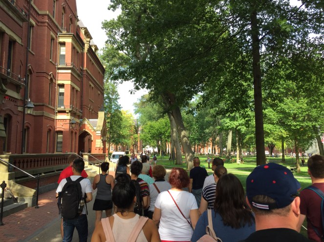 Op onze laatste, volle dag in Boston proberen we onze brakheid te verbergen door op te gaan in de elitaire menigte van slimmerikken op Harvard University. Dat lukt aardig, maar wellicht dat Annika’s chillbroek met olifanten erop ons verraadt. Desalniettemin is het best wel heel erg tof om Harvard te zien. We worden rondgeleid over de campus door een studente en ik probeer de gebouwen en omgeving te herkennen uit de films die zich hier hebben afgespeeld. Het is op dat moment dat de studente vertelt dat er sinds de jaren ’80 niks meer op Harvard wordt gefilmd en dat Legally Blonde gewoon op een set in LA is opgenomen. Oh. Ah well.