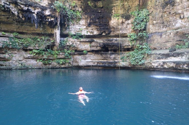 En dan is het tijd voor de volgende halte: Mérida! Ik neem afscheid van mijn Nederlandse partner in crime in Valladolid en stap even later weer in een bus voor 3 uur. Kippenstukje! Met m’n hele hebben en houwen sjok ik vanaf het busstation naar mijn hostel, dat toch iets verder weg is dan ik had gehoopt. Daar aangekomen, ontmoet ik twee leuke Britse meiden en we hebben een gezellige avond. Ik vier Oud en Nieuw in Mérida dus iedereen die ik ontmoet, zal medeplichtig zijn aan de activiteiten op 31 december. Niemand hier heeft echter een idee wat we kunnen doen in de stad. Blijkbaar vieren de Mexicanen hier Oud en Nieuw met familie in besloten kring en is er eigenlijk niet echt een feest. De Britse meiden en ik besluiten dat het een soort kroegentocht zal moeten worden en dat er vast wel vuurwerk zal zijn op het grote plein midden in de stad. Prima. Daar kan ik mee leven. Het Nomadas hostel is overigens heel chill en heeft een zwembad. What?! 3x raden waar ik de volgende dag te vinden ben. Ik vind het allemaal wel prima met die stad en kan me er op de één of andere manier niet toe bewegen iets te ondernemen. Op de tweede dag kan ik gelukkig ook verhuizen naar het benedenbed in het super oneerlijk verdeelde stapelbed. Boven is hels: het matras is hard en smal en je hebt geen railing: doodeng vind ik het. Het benedenbed heeft echter het formaat van een twijfelaar en je ligt er prinsheerlijk. LUXE! Het enige risico dat je loopt is dat je bovenbuurvrouw haar waterfles of telefoonoplader op je hoofd laat kletteren, want geen railing. Dat risico neem ik graag en ik slaap gelijk honderd keer beter.