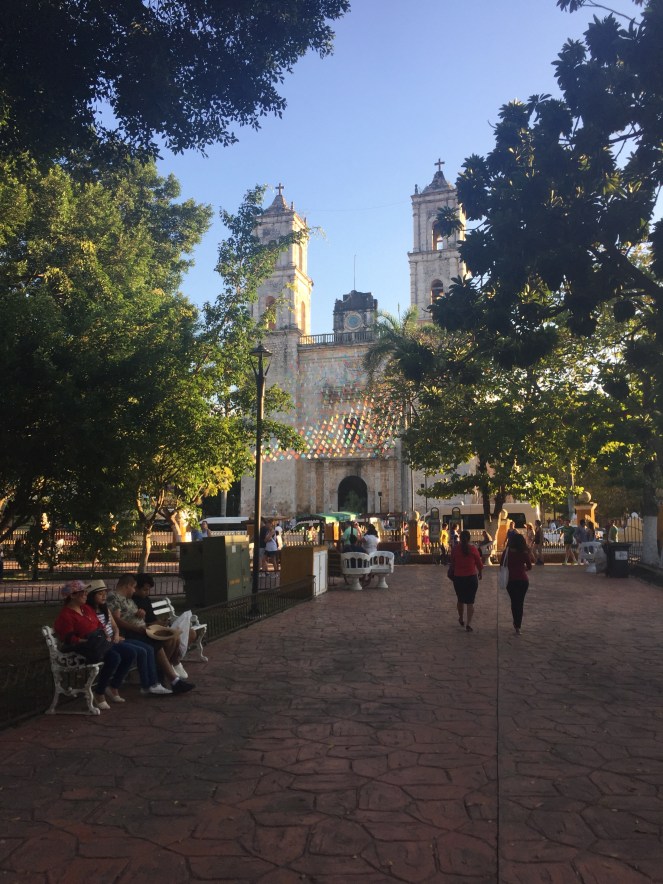 Na de ferry vanaf Holbox en een zeer aangename busreis naar Valladolid, splitsen de Nederlandse Ilhem en ik weer op. We hebben beiden een ander hostel geboekt, maar kunnen bij wijze van spreke naar elkaar zwaaien. Haar hostel heeft duidelijk de betere reviews en ik zou daar verblijven als het niet vol was. Santa Maria Guesthouse daarentegen is de helft van de prijs en dat zie je ook direct in alles terug. Maar ik vind het prima; Holbox was duur zat en ik ben toch maar 2 nachten in Valladolid. De kamer is simpel met 4 eenpersoonsbedden (geen stapelbedden!) en ik deel ‘m met 3 jongens. Altijd gezellig. De 2 Canadezen en de Luxemburger zijn inderdaad erg sociaal en ons gesprek schakelt al snel over naar het lompe niveau dat ik van thuis mis. We besluiten een hapje te gaan eten en vinden een leuk uitziende Tamaleria waar veel locals op het terrasje zitten. Dat is altijd een goed teken. Tamales heb ik ook nog niet gegeten, dus ik wil het graag proberen. De ober helpt mij al snel van deze wens af: ze hebben geen tamales meer. Oké, prima. Kijkend naar de menukaart kunnen we echter geen gerecht ontdekken dat niet met tamales wordt gecombineerd. ‘Wat heeft u wel?’ – ‘De soep van de dag’. Oké, de soep van de dag dan. En een water, por favor. Water is blijkbaar ook niet voorhanden, want even later zie ik de ober de straat oversteken naar het buurtsupertje om een fles voor me te kopen. 20 pesos, staat er op de rekening, terwijl ik heel goed weet dat de prijs in het winkeltje 10 is. Ach, hij ging hem toch voor me halen: service. Ik vind het hilarisch; echt een Mexperience.