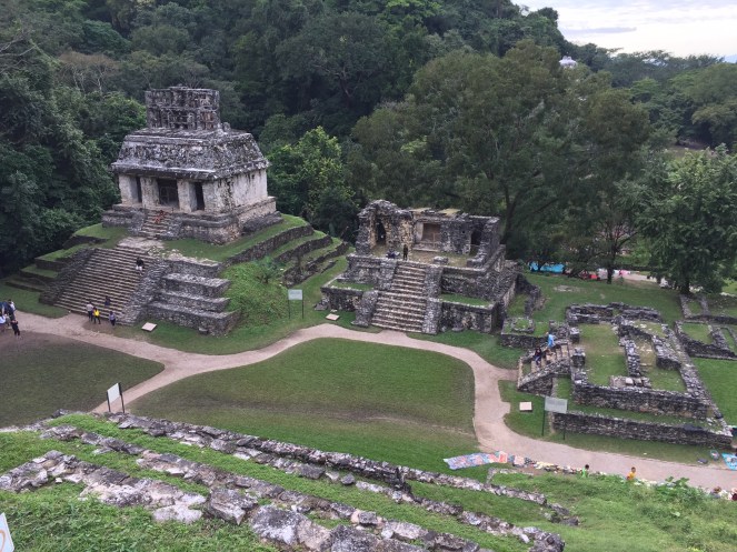 Om 11.30 uur op 2 januari nemen de Britse Rochelle en ik vol energie de bus naar Palenque vanaf Mérida. Ik kijk heel erg uit naar andere indrukken en ik kan niet wachten tot de 8,5 uur durende busrit voorbij is. Ook enigszins omdat op dit deel van het wegennet wel eens overvallen plaatsvinden. Blijkbaar is vooral de nachtbus daar met enige regelmaat doelwit van en daarom heb ik me voorgenomen altijd overdag te reizen. Zodra we er bijna zijn en het al donker begint te worden, moeten we toch ineens stoppen. Oh, nee hè. Het zal toch niet? We moeten allemaal uitstappen bij een raar, bijna verlaten ‘douane’-station, hoewel we de grens van de provincies al lang gepasseerd zijn. Ons wordt verteld onze handbagage in de bus te laten en onze backpacks/koffers het gebouw in te dragen. Daar moet alles door een scanner, ik moet op een knopje drukken en dan mag ik mijn backpack weer oppakken en terugbrengen naar de bus. Wauw. Dat was nuttig. Blijkbaar vinden er wel vaker van dit soort onzinnige checks plaats. We hoeven in ieder geval niet te betalen. En een uur later zijn we er! Jeeej! We slapen vannacht in een hotel, want alle hostels zitten vol. Met zijn tweeën is dat eigenlijk heel goed te doen en is het soms zelfs goedkoper. En Forrest Gump is op tv! In het Spaans, dat wel. Corre, Forrest, corre!