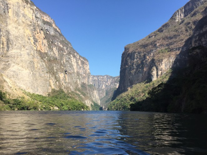 De dag erna bezoek ik ook nog een canyon, een uur verderop. Het is niet te geloven: net als je denkt dat je alle pracht en natuur in Mexico wel hebt ontdekt, doemt daar nog weer een gigantische canyon op waar ik op een boot doorheen vaar. Wat gaaf weer! Die avond bezoeken we met de leukste mensen van het hostel een populaire wijnbar in de stad, waar je bij elk drankje een tapas hapje krijgt. Op dat moment voel ik me zó goed en ik besef wat een goed leven ik heb. Ik ben echt verliefd geworden op dit land en ik weet nu al dat ik snel weer terug wil keren om meer te zien. 7 weken was blijkbaar niet genoeg, want ik heb nu pas 2 provincies gezien. Zoveel mensen, zoveel natuur, cultuur, eten, drinken en gekkigheid. Maar het is nu toch echt tijd voor het vierde land op mijn lijst: Guatemala, here I come!