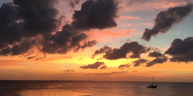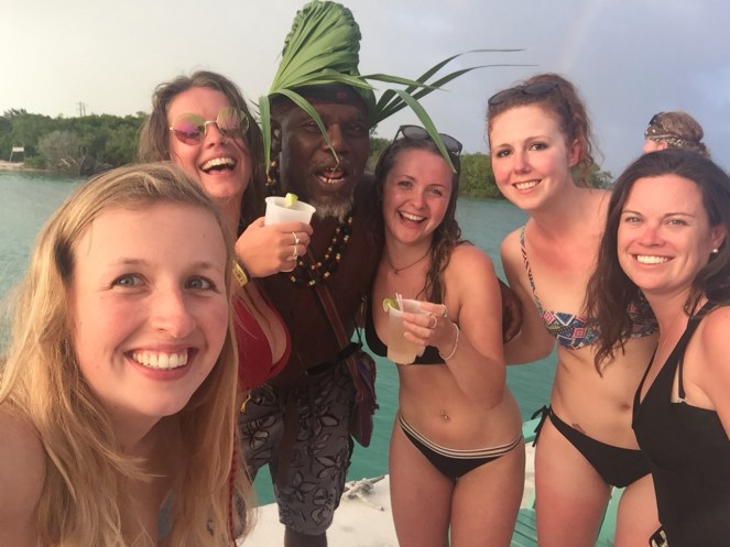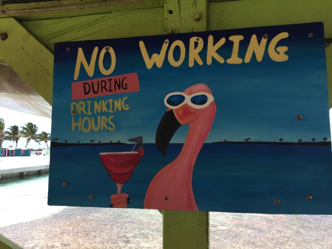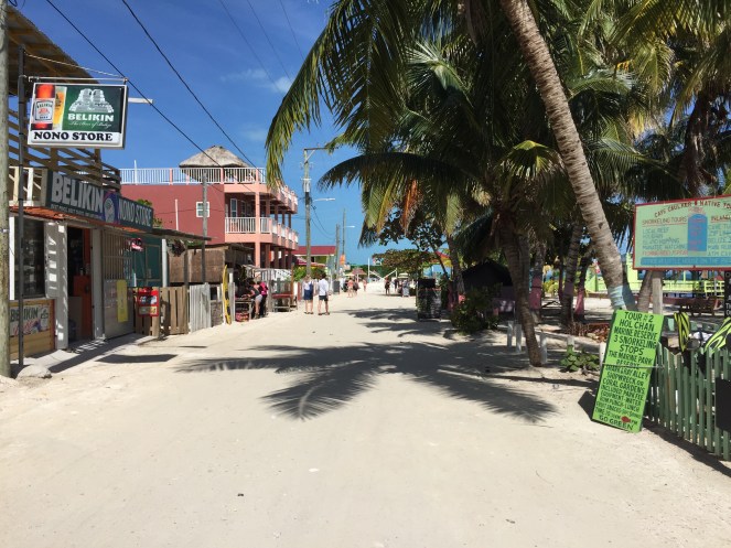 San Ignacio heeft verder niet heel veel te bieden en ik besluit dan toch maar naar Caye Caulker te gaan. Dit eiland is schitterend mooi en staat bekend om de snorkelmogelijkheden en de backpackersfeestjes. Dat laatste houdt me in eerste instantie een beetje tegen want ik heb op zich niet zo’n zin in extreme party. Ook denk ik dat het een beetje hetzelfde zal zijn als Holbox in Mexico, maar zodra ik van de ferry stap, zie ik direct de verschillen. Het eiland is rustig, er zijn veel backpackers, maar het voelt niet toeristisch. De slogan van het eiland is ook ‘Go Slow’ en je wordt erop aangesproken als je in een rap tempo door de zandstraten loopt. Ook vindt men het vreemd als je schoenen draagt; in de regel draag je louter slippers of ga je op blote voeten. Heel chill! Ik kom echter op dit tropische eiland aan in de gietende regen. Met mijn paraplu over m’n beide backpacks heen, loop ik zo snel als ik kan naar m’n hostel. Maps.me is tot nu toe een zeer fijne app geweest, maar op Caye Caulker laat ‘ie me even in de steek. Hierdoor sta ik 20 minuten later niet in m’n hostel, maar in de keuken van een vrouw, die duidelijk geen weet heeft van enige reservering die ik zou hebben. 10 minuten later heb ik dan eindelijk mijn hostel gevonden, maar omdat alles daar op droog weer is gebouwd, ligt iedereen een beetje op bed te hangen. De enige wifi in mijn kamer is te vinden in de hoek bij de watertank en in m’n bed heb ik dus ook vrij weinig anders te doen dan dutjes. De volgende dag is het gestopt met regenen en iedereen is voor 8 uur uit de veren. The sun is awake, so I am awake! Ik ontmoet al snel weer superleuke mensen en we hebben een toffe dag op het strand met een schitterende zonsondergang en als avondeten heerlijke kreeft! Dat is waar ze hier bekend om staan. Hmmm…