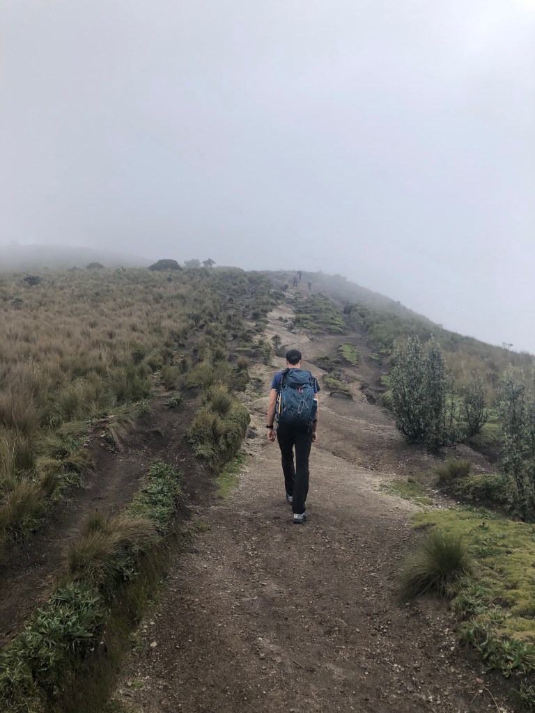 Als je denkt dat je een goede conditie hebt, loop dan maar eens even een middagje door Quito. Tjongeee… dat valt vies tegen op 2850 meter hoogte. Dat is toch 2857 meter hoger dan vanwaar wij komen en dat merk je… aan zeg maar alles. Toch denken we na 2,5 dag acclimatiseren klaar te zijn voor de eerste proef op de som: de Rucu Pichincha, een berg gelegen achter Quito. Met een kabelbaan word je al op 3900 meter afgezet, dus je hoeft zelf alleen maar de laatste 800 meter te lopen. MANMANMAN! Een slak is er niks bij. Elke stap is zwaar, elke ademteug is heftig en het voelt alsof er hier, dichterbij de ruimte, juist méér zwaartekracht is die me bruut naar beneden probeert te trekken. Ik bedoel natuurlijk ‘ons’, die ONS naar beneden probeert te trekken. Behalve dat het Jona uiteraard prima afgaat zo. Evenals onze Tsjechische metgezel die we in het hostel hebben opgeduikeld. Hij kletst er rustig op los en stelt volop vragen, terwijl ik geen pap kan zeggen en hem met m’n tong op m’n knieën aanstaar. Wat een asociale activiteit zeg, dat hiken op hoogte. Je kunt niet eens praten! Overigens is er nog weinig uitzicht ook, dus focussen op m’n eigen perikelen is extra makkelijk. Maar oké, eerlijk is eerlijk, het eerste stuk gaat nog best wel prima. Langzaam, maar niet slecht. Pas als de top in zicht komt, merk ik dat het echt nog niet gaat en ik haak op 50 meter voor het eind af. Jona voelt zich schuldig maar ik zeg hem toch naar boven te gaan. Dit is zijn ding. En ik lig hier prima een paar honderd meter lager als een soort stervende zwaan op hem te wachten. Er komen nog een paar hikers langs die fanatiek in het Spaans tegen me beginnen te praten. Señores, dit is NIET het moment. Zien jullie niet dat ik hier lig te overleven? En dan komt Jona alweer aangerend, met de Tsjech op z’n hielen. Ze hadden precies niks kunnen zien op de top, dus ik had niks gemist. En ook zij hadden inmiddels wel wat last gekregen van de hoogte, dus het lag niet aan mijn incapabele zelf. Én het is toch het hoogste punt dat ik ooit heb behaald! 4650 meter! Hoofdpijn, misselijk, maar toch ook wel trots.