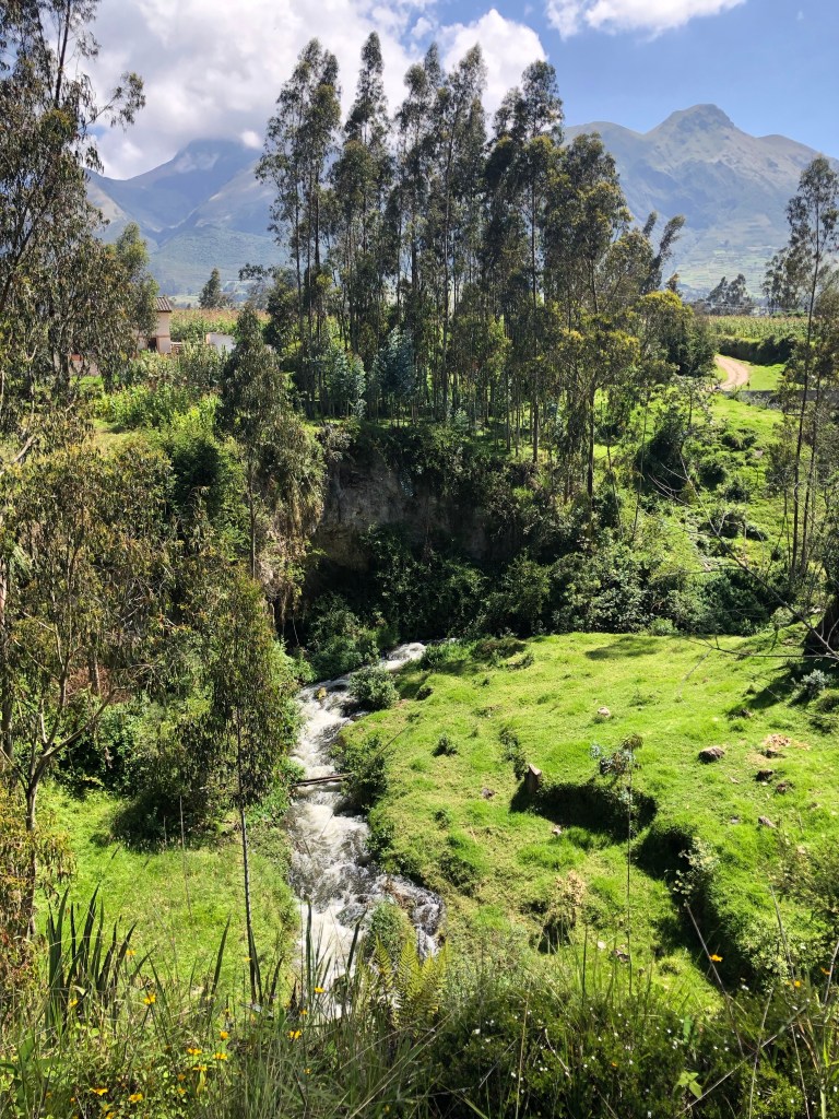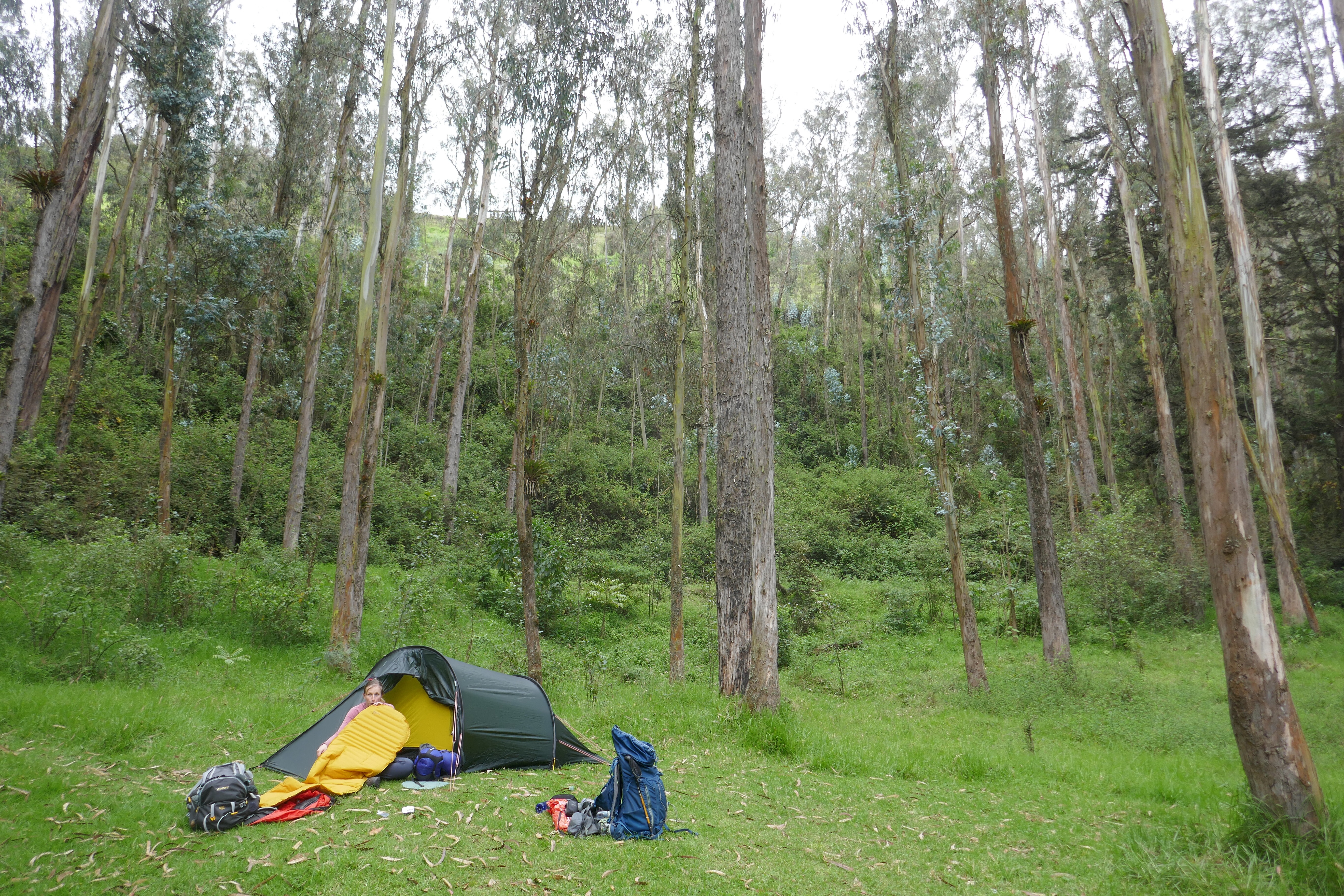 De volgende dag is het tijd om Quito te verlaten. Op naar Otavalo in het noorden, waar ook een paar mooie meren te vinden zijn. Het was even een struggle om te bepalen waar we heen zouden gaan en één van de eerste conclusies van het samen reizen is al gauw getrokken: geen afspraken of plannen proberen te maken als iemand zich niet lekker voelt, honger heeft of iets anders mankeert. Dan gaat het mis. Dus na een nacht goed slapen, hakken we de knoop door en pakken een Uber naar het busstation. Nog geen 10 minuten later hobbelen we in een bus met megavering richting Otavalo. Een dramatische film met Halle Berry wordt gestart en het gedubde Spaans schalt door de bus. Helemaal goed! Otavalo is een gezellig druk stadje, dat bekend staat om z’n grote textielmarkt, waar vooral op zaterdag wordt uitgepakt. Maar we hebben op Maps twee tent icoontjes zien staan ten oosten van de stad, dus we gaan eerst kamperen.