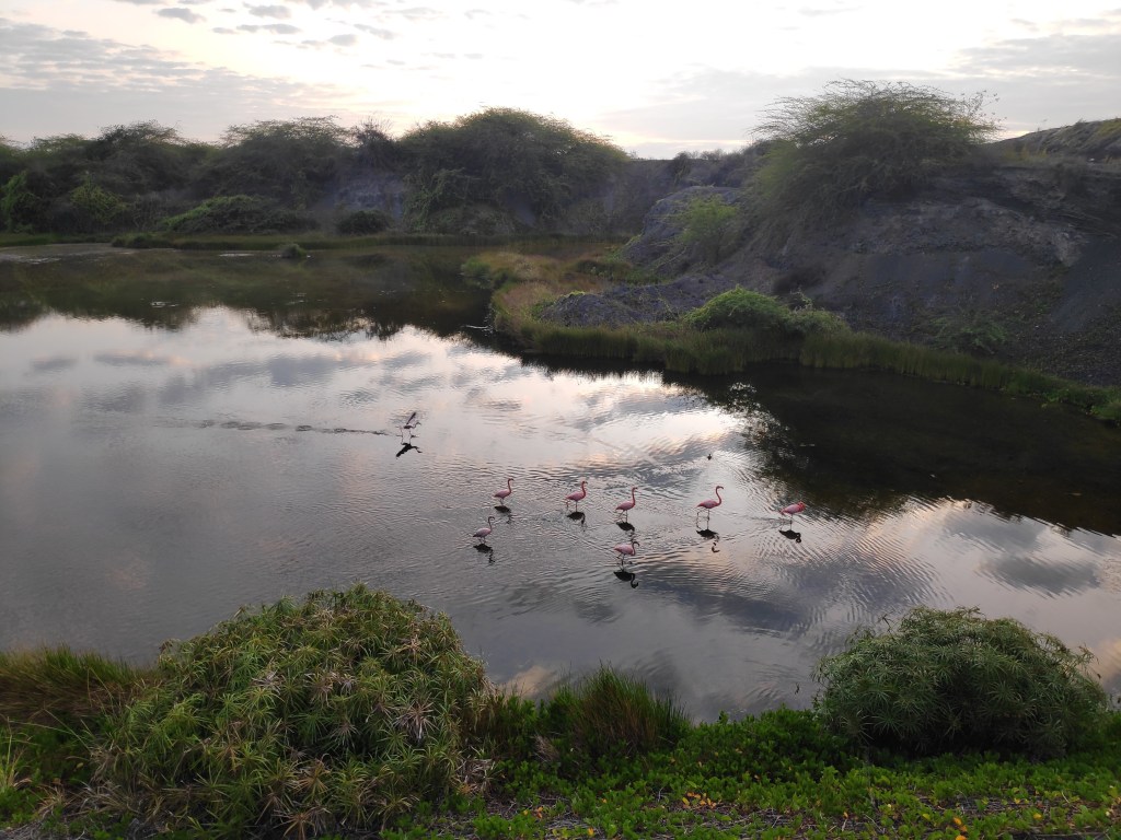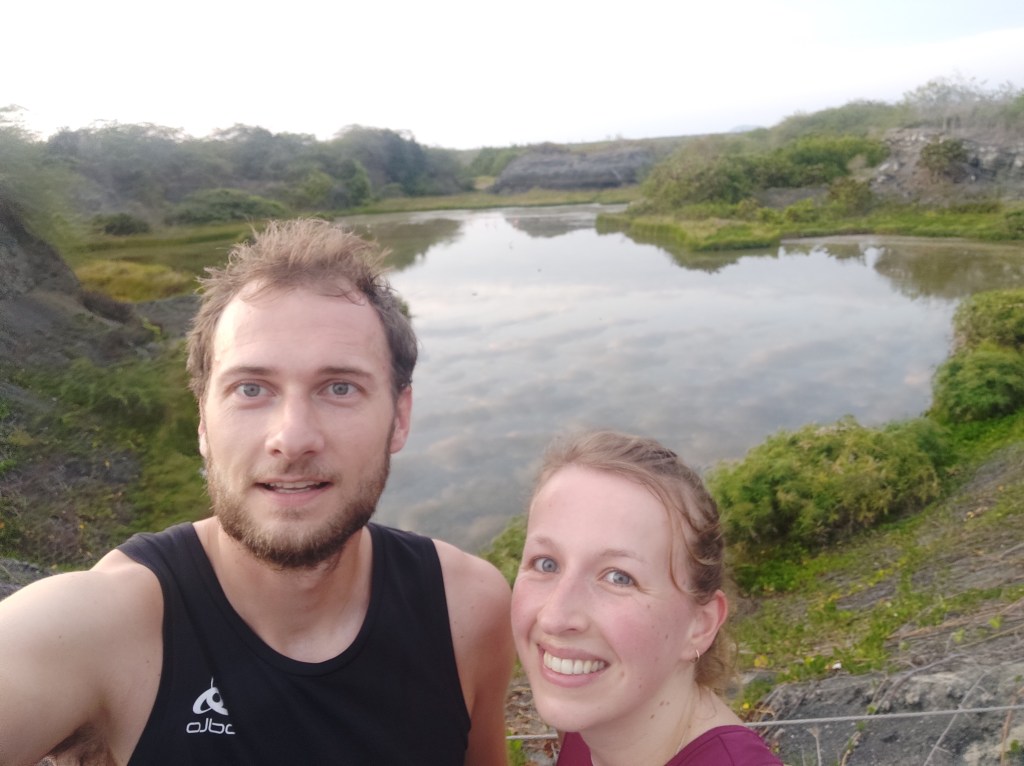 Geloof het of niet, maar de volgende dag staan Jona en ik beiden om half 6 op (JA HALF ZES) en gaan we hardlopen! Dit is ook het enige moment van de dag dat het kan, want de rest van de tijd is het zo’n 100 graden. Ik denk soms echt dat Jona in vlammen opgaat en het is moeilijk voor te stellen dat hij 1,5 week geleden nog bovenop de hoogste berg van Ecuador kou stond de lijden. Maar we hebben dus hardgelopen en we hebben flamingo’s (check!) gezien! Bij aankomst staan ze aan de andere kant van het meer te suffen. Dan komen ze langzaam in een rijtje naar ons toelopen, alsof ze zich klaarmaken om een voorstelling op te voeren. ZO BLIJ! Om nog even een schepje er bovenop te doen, besluiten we daarna een wandeling te maken, gevoed door enige miscommunicatie. We waren namelijk in de veronderstelling dat we gewoon rustig gingen rondwandelen, beetje strandjes bezoeken, beetje naar de Wall of Tears wandelen. Blijkt de Wall of Tears ineens 7 km wandelen te zijn. En dus ook weer 7 km terug. In de bloedhitte, met een halve liter water en geen zonnebrand of snacks! Niet helemaal de bedoeling natuurlijk en met als resultaat 2 paar rode schouders en heel veel honger. Maar wel de Wall gezien, wat toch wel de meeste duistere geschiedenis van Galapagos blootlegt: gevangenen werden op Isabela gezet en nutteloze klusjes gegeven, waaronder stenen van de ene naar de andere kant van het eiland brengen in de volle zon, zonder water of eten, tot ze zouden bezwijken. Yikes. Dan valt ons hete wandelavontuur natuurlijk wel weer mee.