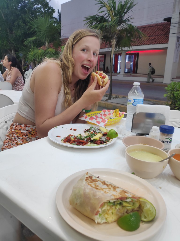 Op een van onze laatste dagen krijg ik ineens een berichtje van… Patricia! Ze komt ook naar Playa del Carmen, dus of we willen afspreken. Waaat een stalker! Natuurlijk willen we dat! Van Cotopaxi naar Baños naar Galapagos naar Lima naar Playa del Carmen – een betere full circle is er bijna niet.