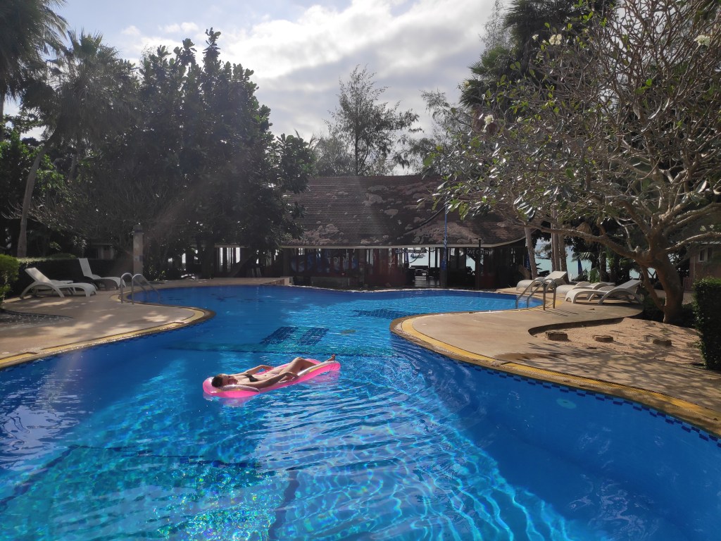 Not to kots, uiteindelijk! De overwinning op mezelf verdwijnt echter snel na aankomst al naar de achtergrond. Het hoost van de regen en we haasten ons met onze tassen onder het afdak op de pier van paradijslijk Koh Tao. Een bordje met de naam van ons hotel erop leidt ons naar een mannetje die ons vervolgens in een open truck laat instappen. Het hotel is drie kilometer verderop gelegen, dus we zijn blij met deze onverwachte transfer. Maar man, wat een zeikweer! Ken je dat? Dat je je verheugt op je vakantie en dat je dan bij je prachtige bungalowpark met zwembad aankomt en alles is grijs en nat? Nou, dat dus. De hoteleigenaar glimlacht, houdt zijn hoofd een beetje schuin en trapt met een vriendelijk gezicht de volgende open deur in: ‘many rain in monsoon time’. Oh, echt?